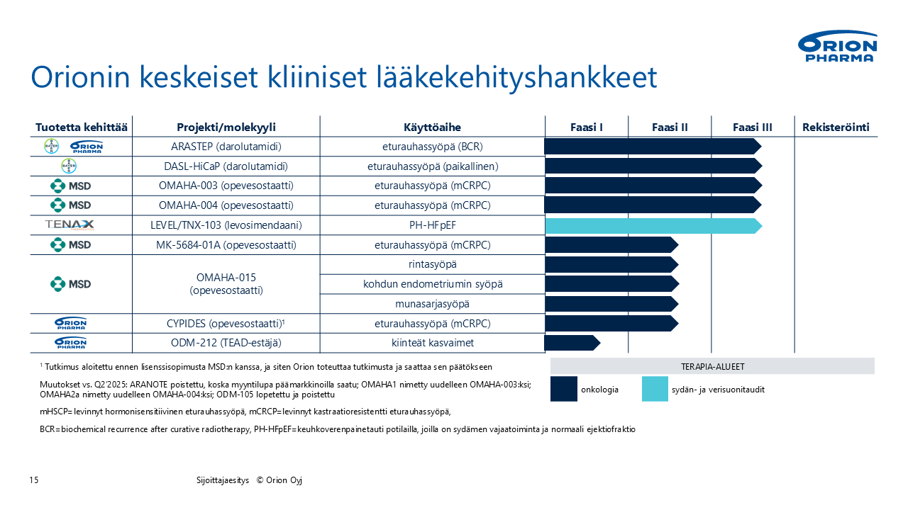 Faasi III -tutkimus ARASTEP on kesken (2023-). ARASTEP-tutkimuksessa arvioidaan darolutamidia yhdessä tavanomaisen hormonaalisen hoidon (ADT) kanssa verrattuna pelkkään ADT-hoitoon hormonisensitiivistä eturauhassyöpää sairastavilla potilailla, joilla on suuri riski syövän biokemialliseen uusiutumiseen (BCR), ja joilla ei näy levinnyttä tautia käytettäessä perinteistä kuvantamista vaan metastaattinen löydös positroniemissiotomografia-kuvantamisella (PSMA), johon on yhdistetty tietokonetomografia (PET-TT).
